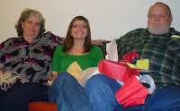 ated Isaac's and my marriage, celebrated Isaac's parents' anniversary and birthdays, and then celebrated Christmas with all the gifts. And all that in a span of just a couple hours. Then the 'santa clauses' don crazy hats and get the task of handing out the piles of gifts under the tree. I don't think I've ever met someone who is so excited about Christmas as Grandma Olsen is, although the smile on Melin