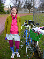 I took a little homework break today to go celebrate Mo and Tommy's birthdays, which are both next week and let me tell you, we were definitely the neighborhood's entertainment. We met with Mo's family on a nearby field and played a rousing game of kickball, but the best part is that we came in style! Back in college, a bunch of our friends played intramural sports