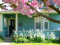 7:30am, dressed in capris and a tank top, pedaling away from our beautiful house with trees blossoming all over the lawn, headed the four miles into work. The sky is a soft, light blue with the wispiest white clouds spotting the expanse here and there. The sun is peeking up over the buildings, shining that perfect hue of goldenness. The street is dark grey and the buildings of downtown are brick and classy, little hippie shops strewn left and right meshing with the tall, old corner office buildings. Trees are everywhere, blossoms exploding like the ones at our house. Then onto State Street. Warmer and pedaling hard to make the lights in order so I don't have to stop. The bay is on my right the whole way in and on days like today, it's exquisite. The darker blue of the water against the bright blue of the sky, shining where the sun hits it, purple mountains backing it. I see this through the strip of thick green, leafy trees, and green grass two feet high because this is, after all, the northwest. The wind is cold on my skin, but I have warmed up inside, so it's the perfect blend. The breaths I inhale are crisp and clean, the way air is supposed to be. I can feel my heart running laps in my chest, the blood flowing through my body even though it's still early morning. I feel so alive.